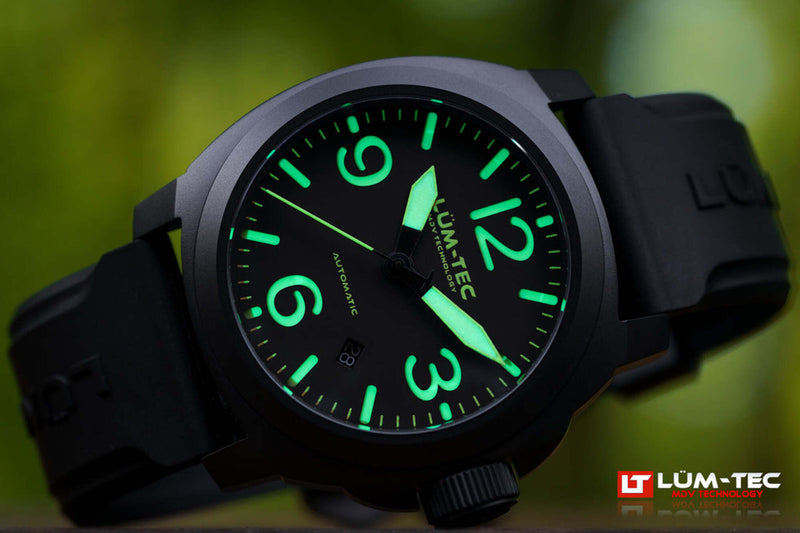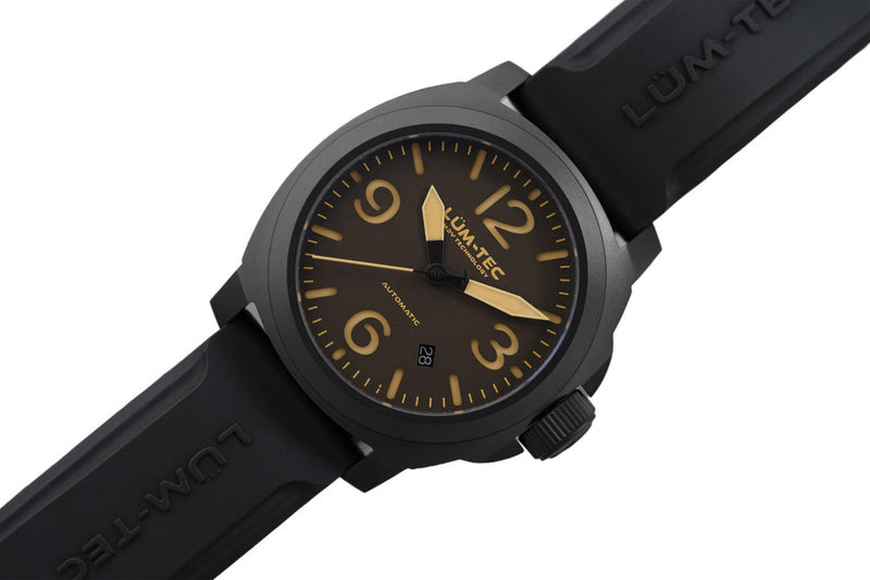 The LUM-TEC M92 Automatic Watch combines rugged functionality with elegant craftsmanship. Crafted and assembled by hand in Ohio, its 44mm 316L surgical grade stainless steel case features a bead blasted black Titanium Carbide PVD hard coating and anti-fingerprint treatment. The watch boasts a 300-meter water resistance, Swiss Sellita SW200-1 automatic movement with hacking and hand-winding capabilities, and a domed sapphire crystal with military-grade AR coating. The matte black PVD dial is adorned with X1 Swiss Super-Luminova for exceptional luminosity, while diamond-cut hands enhance its refined aesthetic. Equipped with a high-tech anti-shock system, Viton® gaskets, and dual diamond-sealed caseback, the M92 includes suede leather and rubber straps, with lifetime service for timing adjustments and seal cleaning. Limited to just 300 pieces worldwide, it comes with a 2-year warranty.